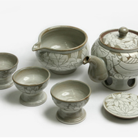 분청 연화문 2인 다기세트