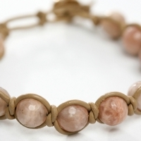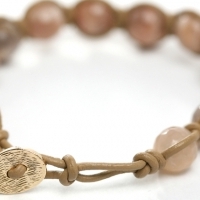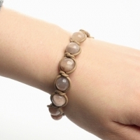 튀지 않는 문스톤과 베이지 가죽줄을 매치해 만든 팔찌입니다.