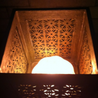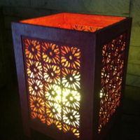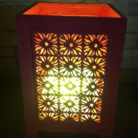 한지를 10배접하여 기하문양을 투각하여 만든 조명등입니다.