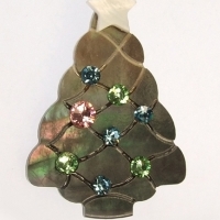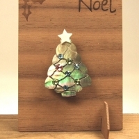 크리스마스트리 자개큐빅 브로치 & 우드카드