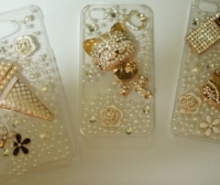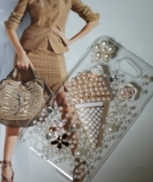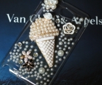 진주로 화려하고 먹음직스럽게 장식된 아이스크림이 메인이 되는 핸드폰케이스입니다. 핸드메이드로 제작이 되었으며, 크고작은 진주들과, 금속파츠로 럭셔리하게 제작되었습니다.