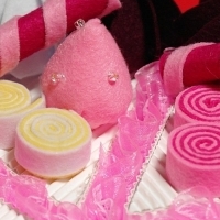 펠트지로 만드는 소품,아이교구,사탕부케,골판지케익등