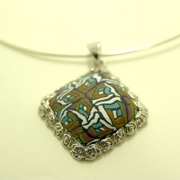 섬세한 조각보 문양의 펜던트가 돋보이는 목걸이입니다.