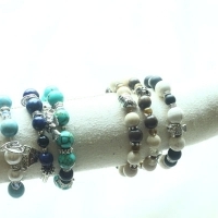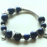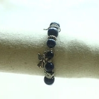 파란색 라피스라줄리와 오닉스 만들어진 준보석 팔찌 참은 닥터후 테마로 이루어졌음