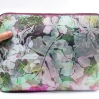 직접 그린 텍스타일 프린팅하여 소가죽과 매칭한 핸드메이드 클러치백