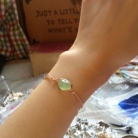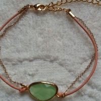 가운데 그린보석 모양의 펜던트가 포인트인 팔찌입니다. 느슨하게 착용하는 것 보다 팔에 딱 맞게 착용하는 것이 예쁩니다. 팔찌 둘레 착용 사진 15.3cm 로 맞게 착용했지만 손목이 더 굵은 분들은 마감 체인고리 거의 끝쪽에 착용하면 굵은 분들도 다 맞습니다. 저는 일반 성인여성분 보통 손목 굵기입니다. 손목이 가늘어보입니다~