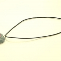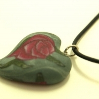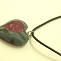 하트모양으로 빚은 폴리머 클레이에 장미 문양이 선명한 팬던트가 달린 목걸이.