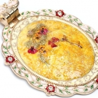 금속과 한지, 꽃 잎 등 다양한 재료들의 어울림을 표현해 보았으며 특히 자수 주머니가 있어 여자 분들에게 선물용으로 너무 좋아요.
