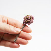 남작끈을 이용하여 국화매듭을 맺어 포인트핀을 만들었으며