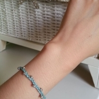 팔찌 둘레 착용 사진 약간 느슨하게 착용, 사진 손목둘레 15.3cm, 저는 착용시 약간 여유있는 편임 마감고리부분에 체인은 없으므로 보통 손목이 굵은 편이면 둘레를 재보시고 구매해주세요~ 저는 일반 성인여성분 보통 손목 굵기입니다.