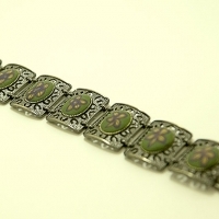 엔틱하고 무게있는 프레임에 폴리머클레이로 작업한 팔찌 입니다.