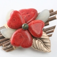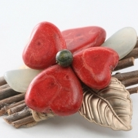 하트꽃 목산호 브로치