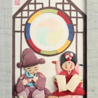 신랑신부의 수줍고 정겨운 모습을 한지에 조형성을 살려 만든 작품이다.