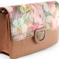 직접 그린 텍스타일 프린팅하여 소가죽과 매칭한 핸드메이드 미니 크러치이며