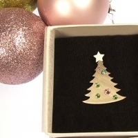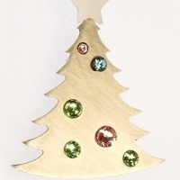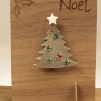 크리스마스 트리 백동큐빅 브로치 & 우드카드