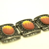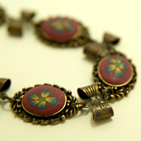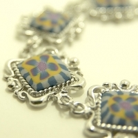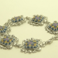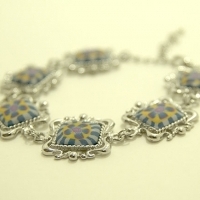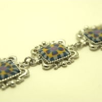 사각형의 독특한 프레임에 삼색그라데이션된 꽃 문양이 독특한 팔찌