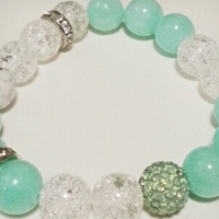 민트원석의 상큼함과 반짝이는 크랙수정이 만나 연두빛 큐빅볼로 장식한 예쁜 팔찌예요^^