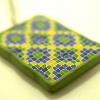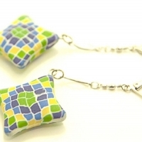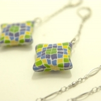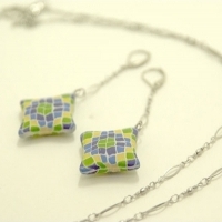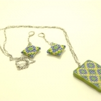 작은 조각의 모양이 모여서 만들어진 목걸이와 귀걸이 세트.