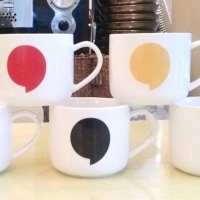 심플한 컬러 쉼표가 인쇄된 400ml 정도가 들어가는 머그 입니다.