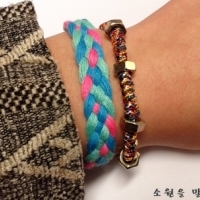 알록달록한 줄을 이용한 팔찌입니다