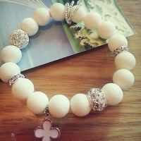 백산호석 팔찌 (10mm)깨끗한 느낌의 백산호석과 론델장식들과 반클리* 펜던트 장식이 조화롭게