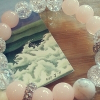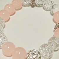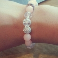 핑크원석이 연한 베이비핑크색이라 정말 소녀같은 여리여리한 팔찌예요!!^^ 크랙수정과 론델들의 블링블링함이 더해져서 정말 예쁘답니다^^