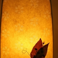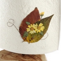 가볍고 질감이 부드러운 편백나무와 닥나무에서 얻은 전통한지를 줌치 기법으로 질기게 가공하여 빛이 은은하게 투과되도록 타공을 하고, 압화로 꾸며 만들어 친환경인 조명기구입니다. 기쁨두배에서는 고급한지공예를 이용한 작품을 만들고 있습니다.