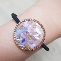 핑크과 퍼플 자개칩을 활용하여 하나씩 정성스럽게 쌓아올렸어요.