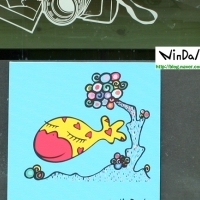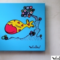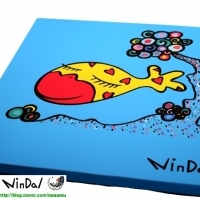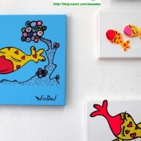 사랑의 메신저로 탄생된 나무에 사는 나무 고기가 사랑을 전염시키는 컨셉의 사랑어를 캔버스에 그린 그림을 출력한 캔버스판넬입니다.