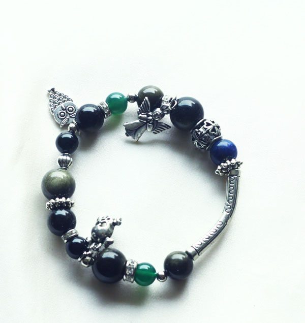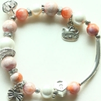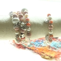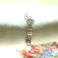 핑크색의 준보석 로도나이트,담수진주, 침수정, 메탈 참으로 이루어진 팔찌