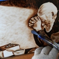 높은열의 인두로 종이 비단 나무등을 지져서 그림과 글씨 문양등을 그려내는 전통 그림입니다 소중한분께 특별한 선물이 될수 있습니다