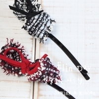 트위드 소재의 원단리본으로 만든 볼륨실핀입니다. 살짝 볼륨을 주고 스웨이드로 한겹 더 리본모양을 만들어 주었습니다