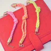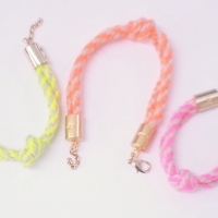 형광 스트링 팔찌로 트랜드 칼라인 형광과 베이지 칼라가 믹스매치된 칼라풀한 상품