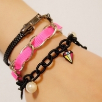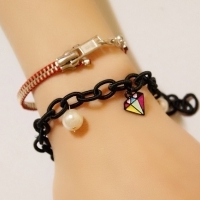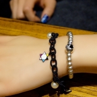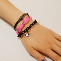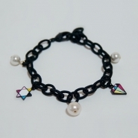 ![]() 컬러: 블랙 사이즈: 21cm (체인길이) + 2cm (고리크기) 메탈이나 플라스틱 체인이 아닌, 실크체인으로 제작된 제품입니다 :) 실이나 끈과같은 재질로 되어있어 가볍기도 가볍고! 일반체인에서 보여지는 도금이 벗겨지는 문제가 없어요~ 물에 닿아도 잘 말려주기만 하면 됩니다! 크기가 살짝 다른 진주와 별과 다이아몬드의 도형 참이 아기자기하고 귀여운 팔찌 :D 블랙 색상의 조화로 시크하고 유니크하기도 하답니다~ ** 조정자가 따로 없이 팔목 사이즈에 맞춰서 고리를 체인에 걸어서 착용이 가능합니다 배송안내