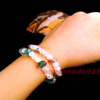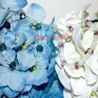 핸드메이트 고무 팔찌 크랙수정과 꽃구슬의 조화(분홍꽃or파란꽃-----中택1)