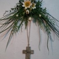 가랜드에 지점토로 만든 십자가를 걸었습니다
