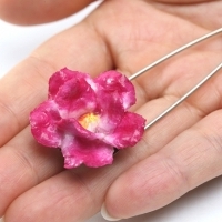 ![]() 작품명 및 규격이예요. -상품명 : 아름다운 우리나라 꽃핀(분홍) 입니다. -제작방식 : 펄프지를 사용하여 제작되었어요. -구성 : 노랑, 분홍, 보라, 연두, 파랑 5가지 색상이 있어요. -사이즈 : 3 (가로) x 7 (세로) x 1.5 (높이) cm (※ 사이즈는 재는 방법에 따라 다소 오차가 날 수 있습니다.) 작가 이야기. 이 제품은 펄프지로 만들어져 부드럽고 가벼우며 스카프, 코트 장식으로 여자 분들에게 선물하기 안성맞춤 이며 가볍고 질감이 부드러운 펄프지와 그라데이션으로 우리의 아름다운 꽃을 표현한 소박하면서도 화려한 악세사리입니다. 수공예품이면서도 가격이 저렴하고, 색상이 다양해서 너무 좋아요. 기쁨두배에서는 고급한지공예를 이용한 작품을 만들고 있습니다. 세상에 둘도 없는 최고의 상품을 안겨드리기 위해 정성을 다합니다. 주문 제작 시 5개 이상 1주일정도 정도 소요되며 100개이상 단체 주문 시 1달 정도 소요 됩니다. 작가님께 문의사항이 있을경우 페이지 하단의 댓글입력이나 쪽지를 보내주세요. 배송안내