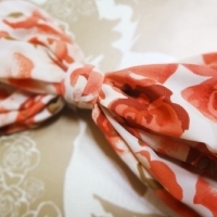 스카프 소재로 제작되었구요. 10cm 큰삔대라서 한묶으로도 가능하실수도 있어요. 왕삔이라서 화사하고 큰삔을 좋아하신다면 후회없으실 거에요.