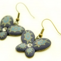 나비 모양의 프레임에 폴리머클레이로 작업하고, 큐빅으로 포인트를 준 귀걸이 입니다.