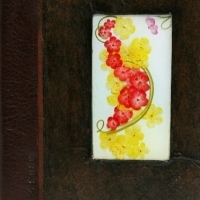 고색한지에 압화를 넣어 표지를 만들고 책기둥은 가죽으로 덧대어