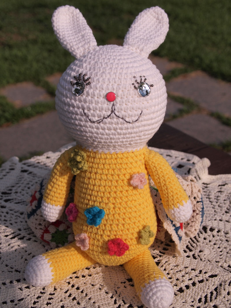 노란 손뜨개 토끼 인형
