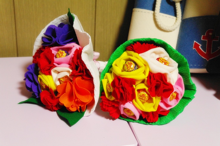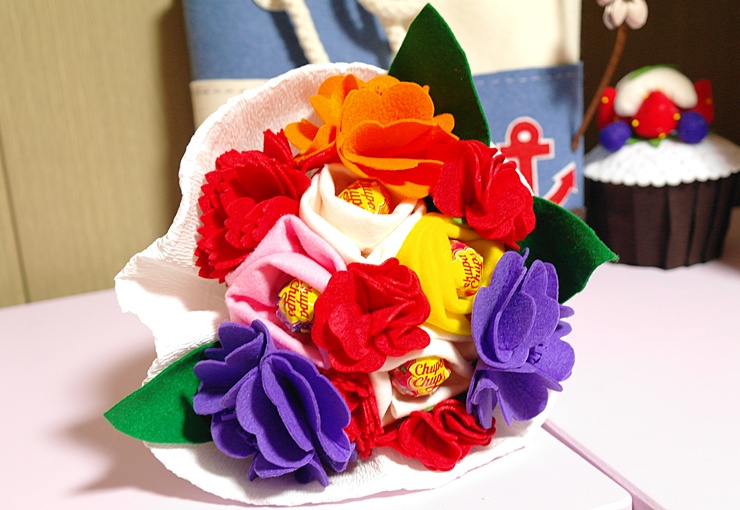 펠트지로 만드는 소품,아이교구,사탕부케,골판지케익등
