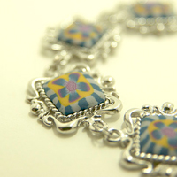 사각 모티브 삼색꽃 팔찌