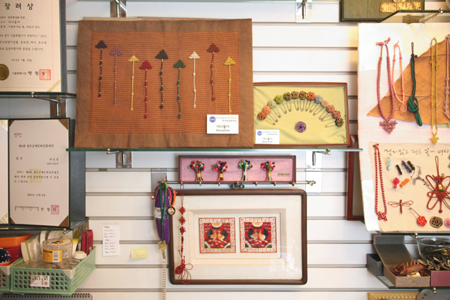 A. 2005년 10월 30일, 전통매듭 단위클럽장을 취득하고 2006년 4월, 전통매듭 3급 자격증을 취득했다. 전통매듭 자격증을 취득한 2006년 10월 은마상가에 매듭공방을 오픈했으며, 2007년 7월에는 한국수공예협회의 전통매듭 사범증을 취득하며 2008년 이후 NC백화점 전통매듭 강사로 현재까지 활동 중이다. 2009년 10월에는 제2회 ‘생활공예공모전’의 특선을 수상하고, 2010년 9월에는 ‘한성백제문화제’ 매듭 부분에 참가했다. 그리고 10월에는 제3회 ‘생활공예공모전’의 입선을 수상하기도 했다. 2011년, 하이서울페스티벌에 참가하고 너나들이 전통매듭 전시회를 열었으며, 올해에는 가든5, 하이브랜드 아트마켓 참가, 6월 핸드아티 아트상품 반견전 전시를 비롯해 ‘2012 서울 우수관광기념품 공모전’ 장려상을 수상하고, 코엑스에서 열린 ‘핸드메이드 코리아페어’에 참가하는 등 활발한 활동을 펼치고 있다. Q. 전통매듭이 무엇인지 생소한 사람도 있을 것 같은데. 이 기회에 전통매듭이 무엇인지 잘 모르는 사람들을 위해 소개해준다면. A. 전통매듭은 우리나라 고유의 전통공예로써 끈목을 이용하여 만든다. 대중들은 흔히 매듭공예하면 노리개를 떠올리는데, 이 밖에도 다양하게 활용될 수 있다. 너나들이에서는 전통 장신구뿐만 아니라 귀걸이, 목걸이, 핸드폰 액세서리, 시곗줄, 찻잔받침 등 다양한 제품을 전통매듭으로 만들고 연구한다. Q. 전통매듭은 젊은이들의 관심 밖에 있는 분야인 것이 사실이다. 액세서리에도 여러 분야가 있는데 특별히 전통매듭을 전문적으로 공부하게 된 특별한 계기가 있다면? A. 어릴 적부터 한국의 전통에 관심이 많았다. 전공도 한국무용을 했다. 그러다 보니 자연스레 우리나라 전통공예에 대해 전문적으로 공부하고 싶은 생각이 들었고, 공방을 운영하면서 전통공예에 대한 연구와 수강을 하게 됐다. Q. 전통매듭공예의 진정한 매력은 뭐라고 생각하나? 또, 어려운 점이 있다면. A. 전통매듭공예는 색감이 다양해 작업을 할 때마다 새롭다. 손으로 일일이 작업하다보니 똑같은 작품을 똑같은 방법으로 만들더라도 작업을 할 때도 다른 느낌을 갖게 되고, 같은 듯 다른 작품이 완성된다. 수학적인 공예라서 방식이 조금이라도 엇나가면 제대로 모양을 갖추지 못하는 것도 전통매듭공예만의 매력이라 할 수 있다. Q. 주로 어떤 컨셉의 작품을 추구하고 있나. 본인의 작품세계를 소개해 준다면. 또, 작품 활동을 함에 있어 가장 중점적으로 생각하는 부분이 있다면 무엇인가. A. 내가 생각하는 전통이란, 오래된 것을 보존하는 것도 중요하지만, 전통을 이어가면서 현대적인 감각을 더해 퓨전으로 대중들도 쉽게 접할 수 있도록 하는 것이 중요하다고 생각한다. 전통매듭공예로 좀 더 대중적으로 다가가기 위해 더 많은 작품을 만들고 연구하고 있다. Q. 체험프로그램이나 수강프로그램이 마련되어 있는 것으로 안다. 구체적으로 어떤 프로그램이 마련되어 있나. 수강생들이 전통매듭 공예를 통해 얻을 수 있는 것이 있다면. A. 우리 공방에서는 전통공예 매듭을 초급부터 연구반까지 다양하게 수강 프로그램을 마련되어 있다. 간단한 작품부터 복잡한 작품까지 다양한 작품을 직접 만들며 손의 협응력과 집중력, 색 감각 등을 기를 수 있는 것이 전통매듭 공예다. Q. 지금까지의 작품 중 가장 애착이 가는 작품을 꼽으라면. 또, 앞으로 어떤 작품 활동을 해나갈지 작품 활동에 대한 계획과 목표에 관해서도 궁금하다. A. 모든 작품이 애착이 가지만 꽃을 모티브로 한 작품들이 가장 애착이 가는 것 같다. 앞으로도 작품 활동과 연구를 꾸준히 해나갈 것이고, 목표라면 지금처럼 현대적인 감각을 더해 대중이 쉽게 접할 수 있도록 하는 것이다. Q. 젊은이들에게 전통매듭 공예 제품은 연출하기 어렵고 나이 드신 분들을 위한 것이라는 생각이 있는 것이 사실이다. 이런 젊은이들에게 전통매듭작품을 이용한 스타일 연출법을 제안해준다면. 또, 고객들이 전통매듭 공예 제품을 선택할 때 꼭 생각해야 하는 부분은 무엇인지 조언 부탁한다. A. 전통매듭은 실 색감이 매우 다양하기 때문에 꼭 어른들만이 좋아하는 작품들만 있는 것은 아니다. 내가 만드는 작품들은 헤어핀과 목걸이, 귀걸이 등등 신세대들이 좋아할 만한 아이템이 많이 있다. 우리 공방에 오면 아주 다양한 작품들을 만나볼 수 있는데, 생각보다 다양한 아이템에 놀랄 것이다. Q. 마지막으로 본인의 작품을 접하는 사람들에게 하고 싶은 말이 있다면. A. 전통매듭은 생각하는 것만큼 어려운 공예가 아니다. 색감도 다양하고, 아기자기한 작품들을 보면 눈과 손이 즐거울 수 있다. 우리 전통적인 공예이고, 현대적 감각을 더한 작품들도 많이 있으니 전통매듭 공예에 많은 관심 기울여 달라.