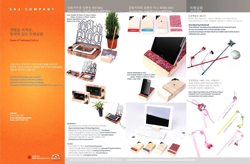 2011.10.04 세종아트 설립 2011.10.26. SBS <현장 21> 에 세종아트 소개 2011.11.07. KBS1 드라마 <당신뿐이야> 산수보드 제품 협찬 2011.11.21. MBC 드라마 <오늘만 같아라> 산수보드 제품 협찬 2011.11.26 기술보증기금 신기술사업자 선정 2011.12 서울특별시 시장 직무실 제품 전시 2012. 2 제22회 서울 국제 판촉물, 선물 및 홈웨어 전 참가 (www.sipremium.com) 2012. 2 중소기업진흥공단 HIT 500 선정-행복한세상 백화점 입점 2012. 4 중소기업진흥공단 온라인마케팅지원사업 선정 2012. 4 신촌 꿈꾸는 청년가게 입점 2012. 4 HIT 500 매장 한국관광공사 관광안내전시관 매장 입점 2012. 5 SBA 온라인마케팅지원사업 선정 2012. 5 서울시 & SBA 차세대 수출중소기업 육성사업 선정 2012. 5 MBC 드라마 <아이두아이두> KBS 1 드라마 <별도 달도 따줄게> 산수보드 제품협찬 2012. 6 인천공항 KOREA HIT500 PRODUCTS 면세점 입점 2012. 7 중소기업청 “R&D사업 수행업체 협약” 및 상품개발 2012. 8 인천경제통상진흥원 1층 전시장 입점 2012. 9 제42회 대한민국 공예품대전 오픈마켓 참가 2012. 10 제11회 세계한상대회 참가 2012. 10 SBA 네이버 지식쇼핑 서울샵 입점지원대상 선정 - 특허출원 - 10-2011-0108420 자석보드독서대 자석보드 독서대(인왕산수보드)의 발명의 형태와 제반기술에 관한 세부항목 - 디자인출원 - 30-2012-0046406 독서대 및 보면대 30-2012-0047518 용지세우개 30-2012-0047519 독서대 및 보면대 30-2012-0047520 휴대용전화기거치대 - 상표출원 - 40-2011-0057511 제 [20] 류 - 상표등록 - 41-2011-0032690 제 [42] 류 40-2011-0066003 제 [25] 류를 포함한 [2]개류